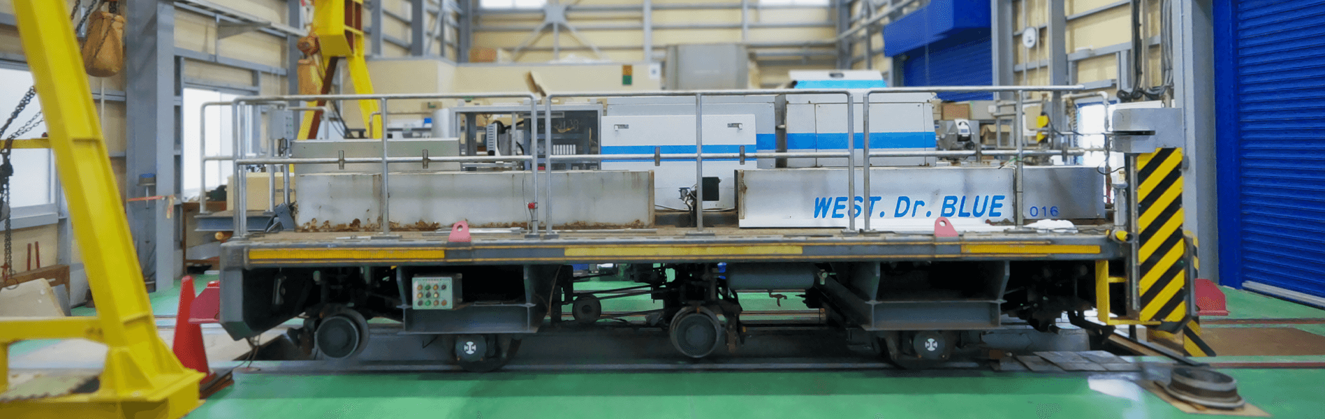 鉄道保線用車両の内部に制御装置(PLC)や発電機、コンプレッサー、エアシリンダー、その他各種センサーを搭載する作業や、保守用車両にけん引されながら線路の高低・左右の水準・軌間・平面性を自動記録して・レール品質を確認する装置(車両)の点検、メンテナンスを行っております。
